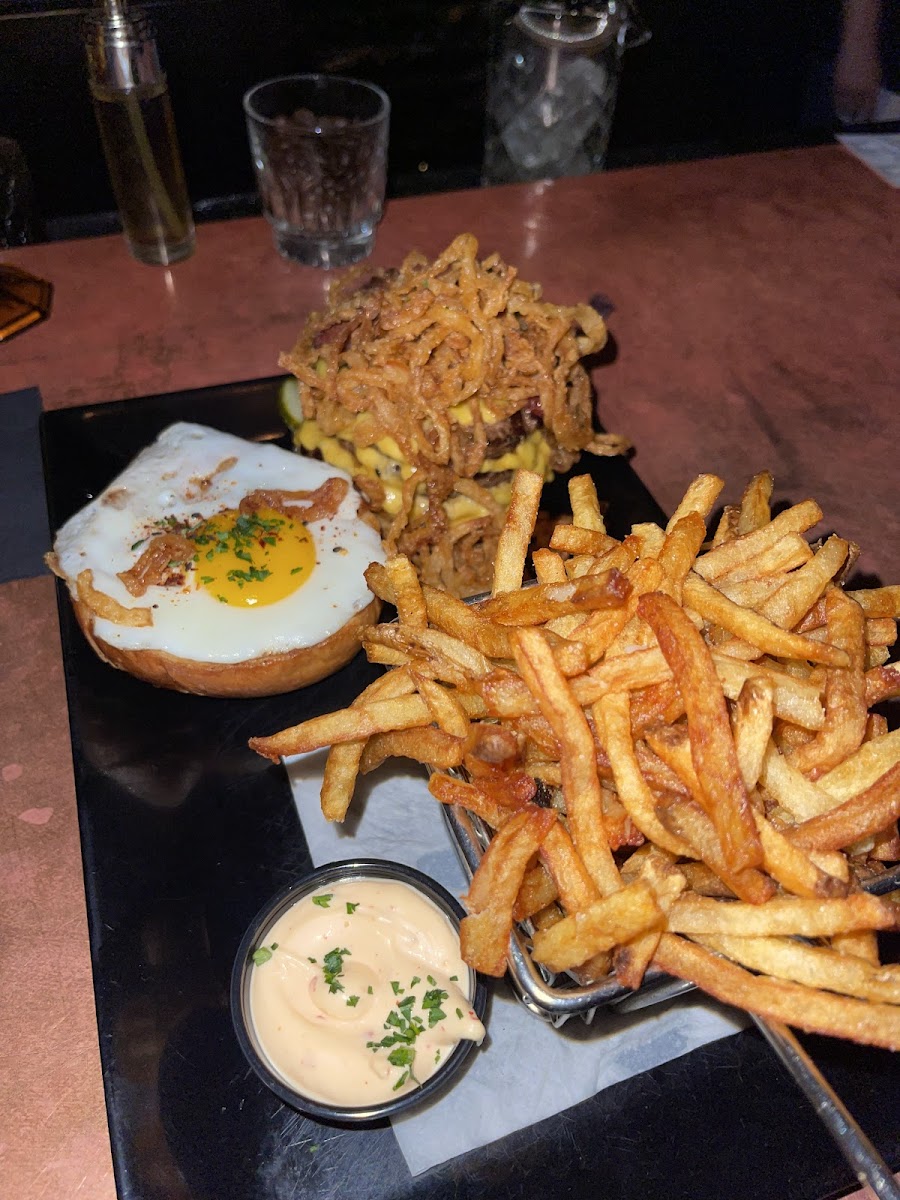 We went here for my brother’s birthday since we have heard a lot of good things! To start off, we surprisingly got seated right away despite it being lunchtime on a Saturday. Our waiter was phenomenal- she was so sweet and helpful! We started off with the muscles and a duck bao bun- both of which were so good! The mussels and broth were delicious and the duck was crispy and so so tasty. Then, my family got the wolf burger and I got the bad burger with an egg. They were delicious!! I would definitely recommend getting an egg and the fried onions on top of the bad burger. I was able to finish the bad burger but the wolf burger was too big for my parents haha. They gave a generous amount of fries and the side salad was really good with several dressing options. And, the Mac and cheese was phenomenal! Also, all the food came out SUPER quick, like 5/10 minutes! The building was pretty cozy but nothing special. Overall, this place was very good! No dessert but there’s enough food to make you full!! Maybe a little bit pricy but worth it.